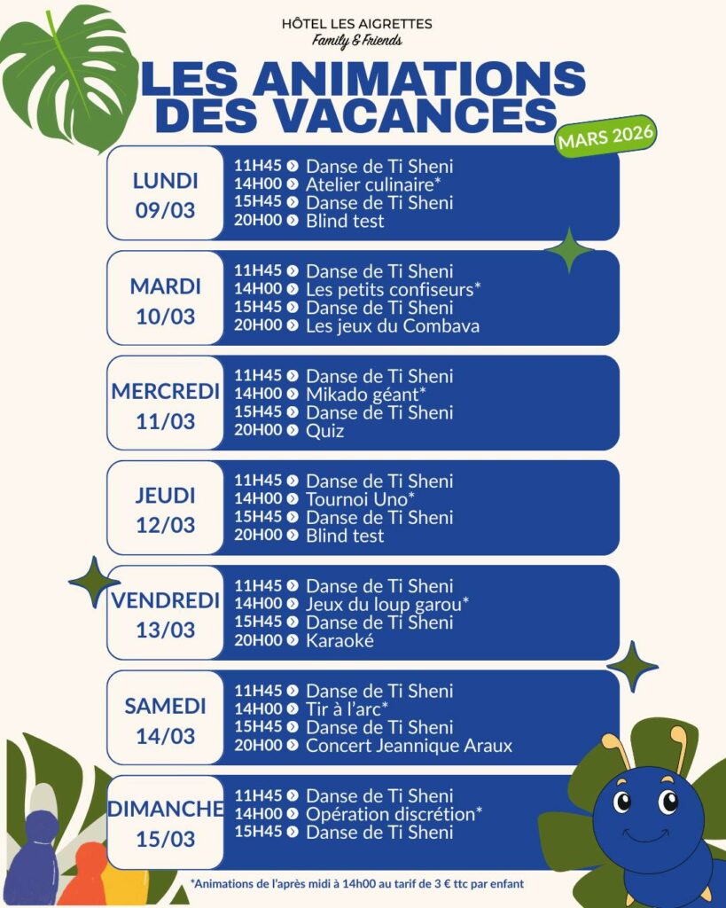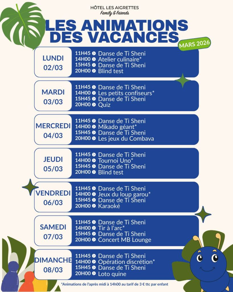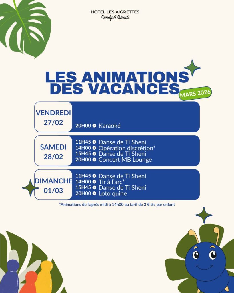 Du 27 février au 14 mars 2026, retrouvez l’ambiance vacances à l’Hôtel Les Aigrettes !